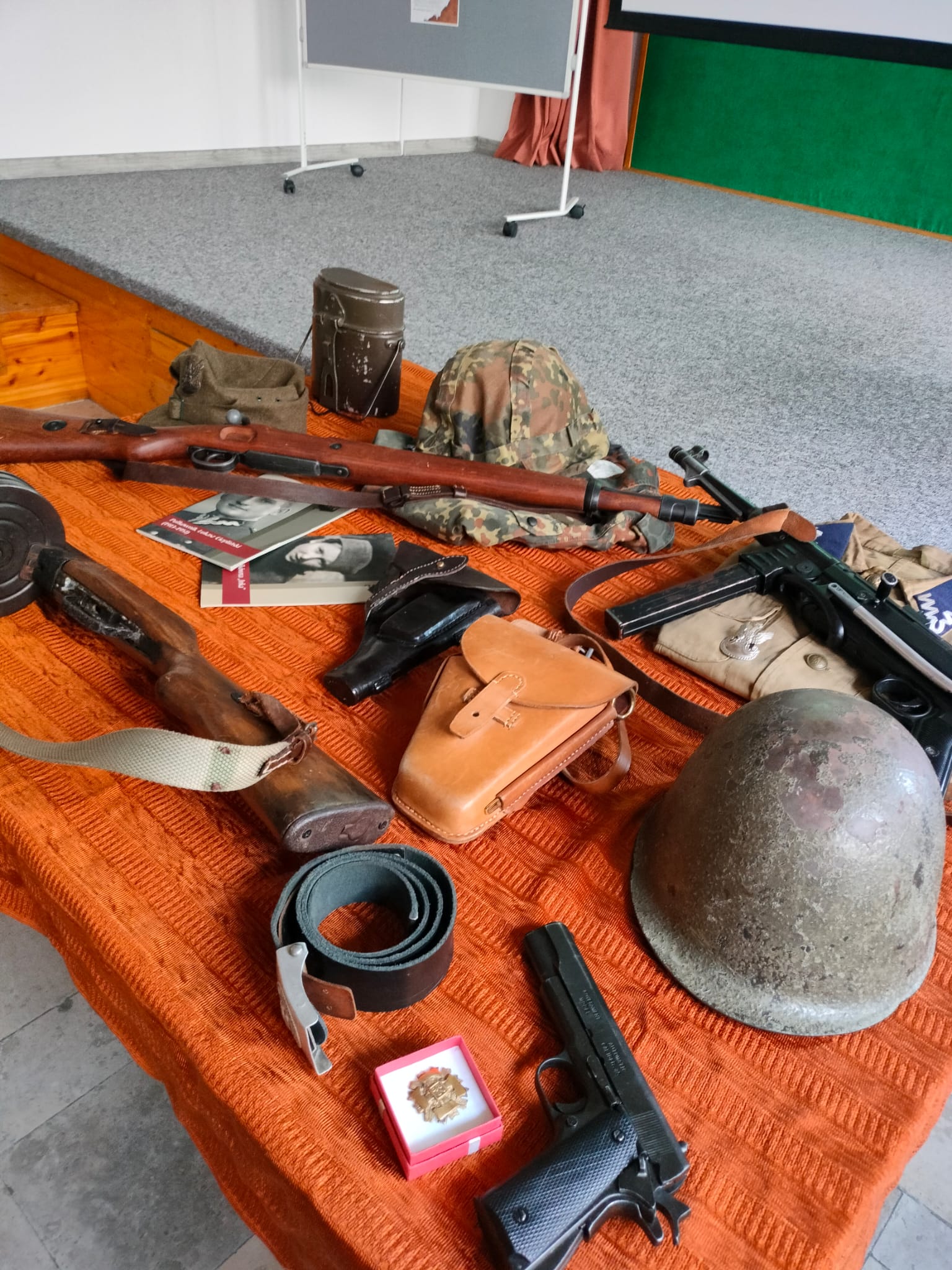 Dużym zainteresowaniem cieszyła się prezentacja pamiątek historycznych z okresu II wojny światowej – mundurów, elementów umundurowania, wyposażenia wojskowego oraz replik broni.