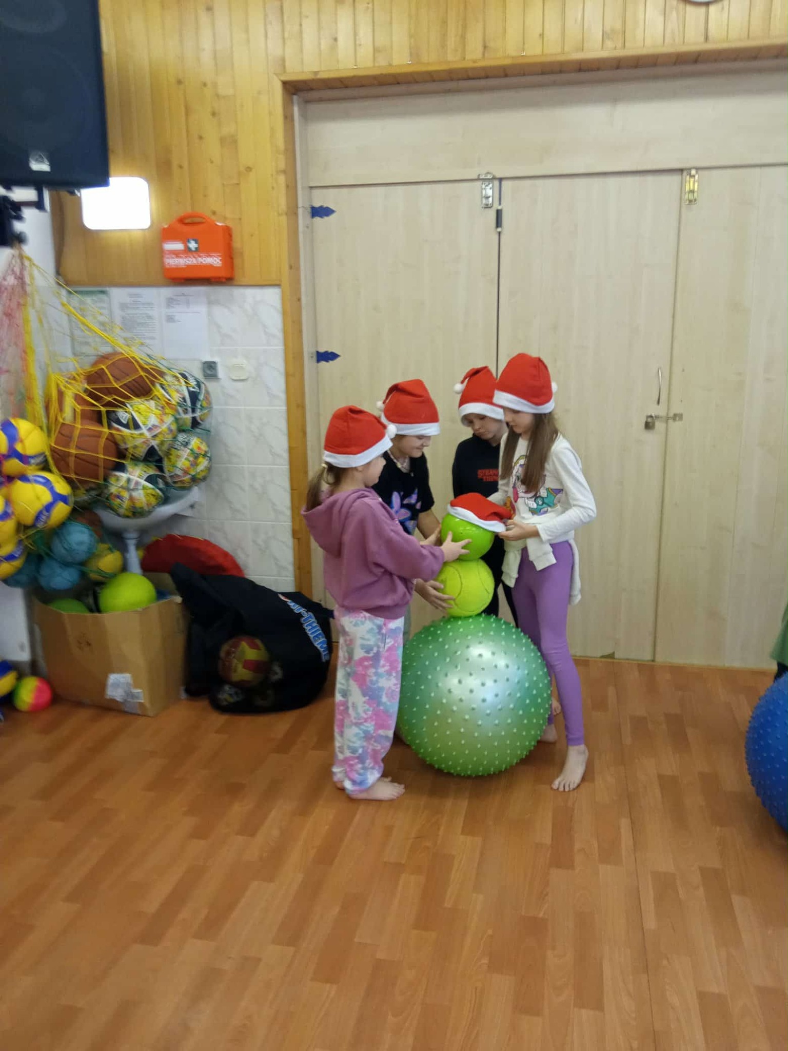 - Lepienie bałwana z piłek (zadanie zespołowe).
