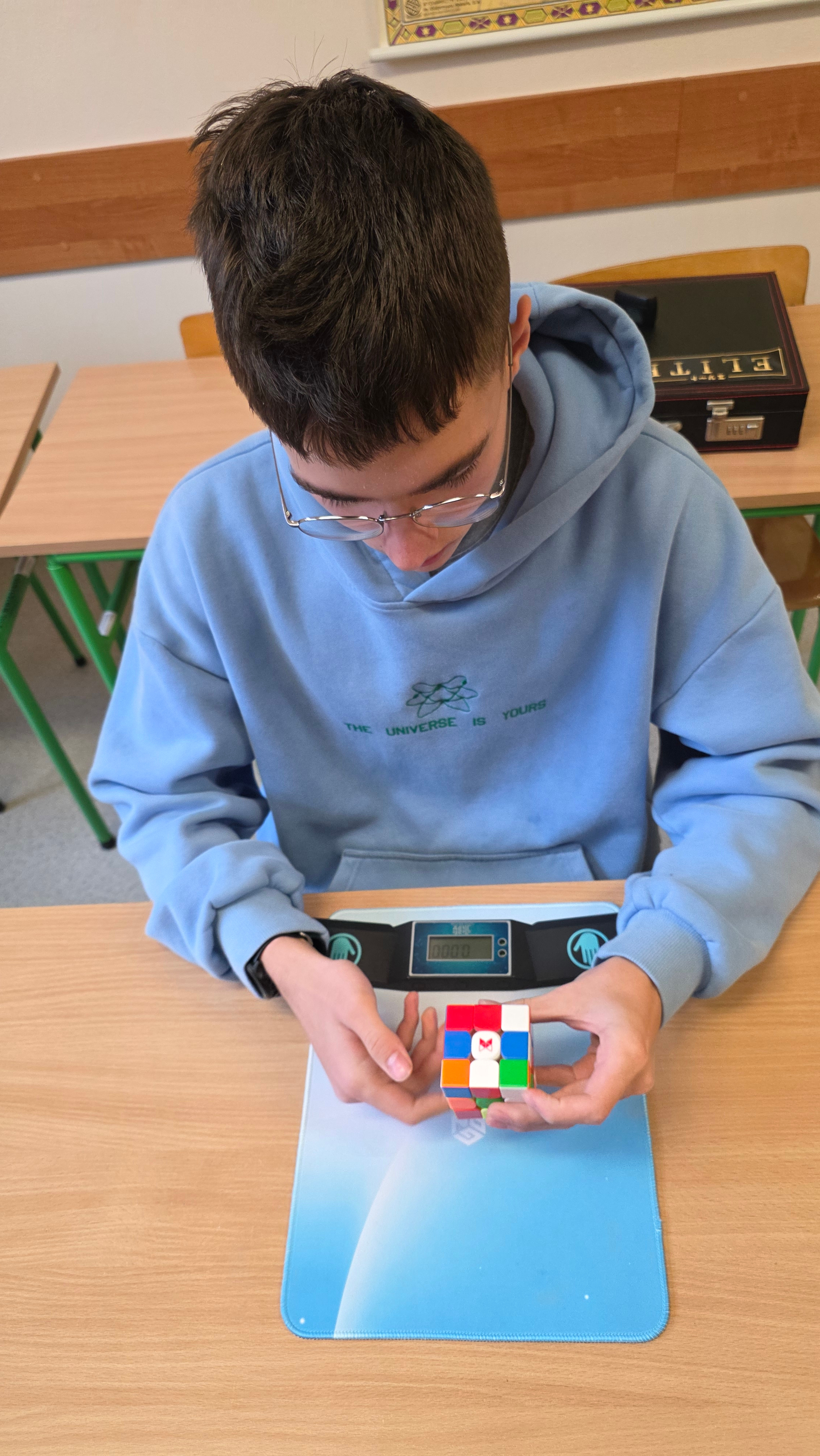 Uczeń naszej szkoły Adam Borek to prawdziwy mistrz! Ten mały sześcian dosłownie pali się w jego rękach. Jeden z najlepszych czasów Adama, to 16 sekund. Oprócz talentu posiada niezbędne akcesoria ulokowane w eleganckiej walizce. Sam bardzo skromnie opowiada o sobie: "Nazywam się Adam i od dwóch lat pasjonuję się układaniem kostki Rubika. Zaczęło się zupełnie spontanicznie, a dziś to coś, co naprawdę mnie wciągnęło. Mam 14 lat i wciąż sprawia mi to dużo satysfakcji. Wierzę, że każdy może się tego nauczyć – wystarczy trochę cierpliwości i chęci."