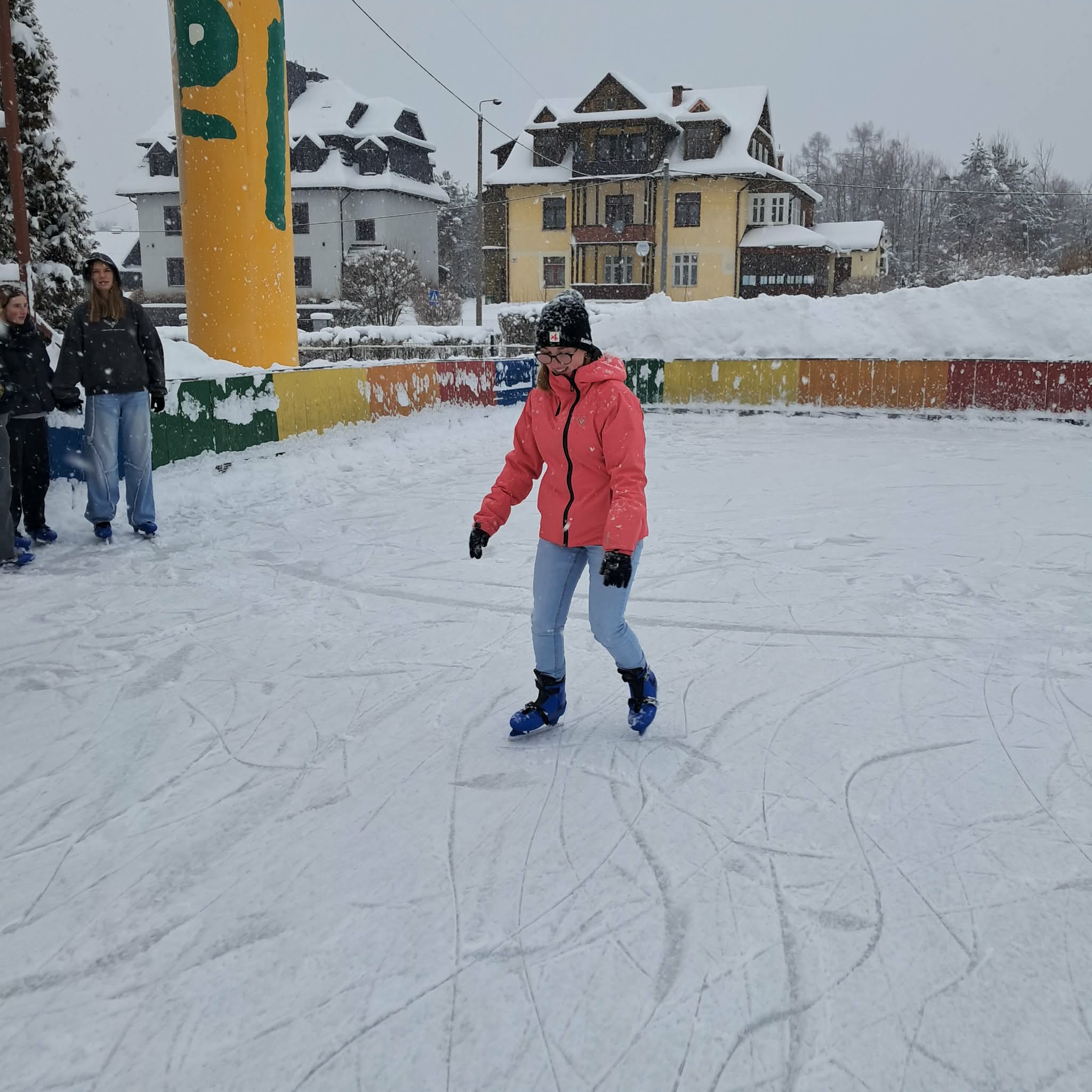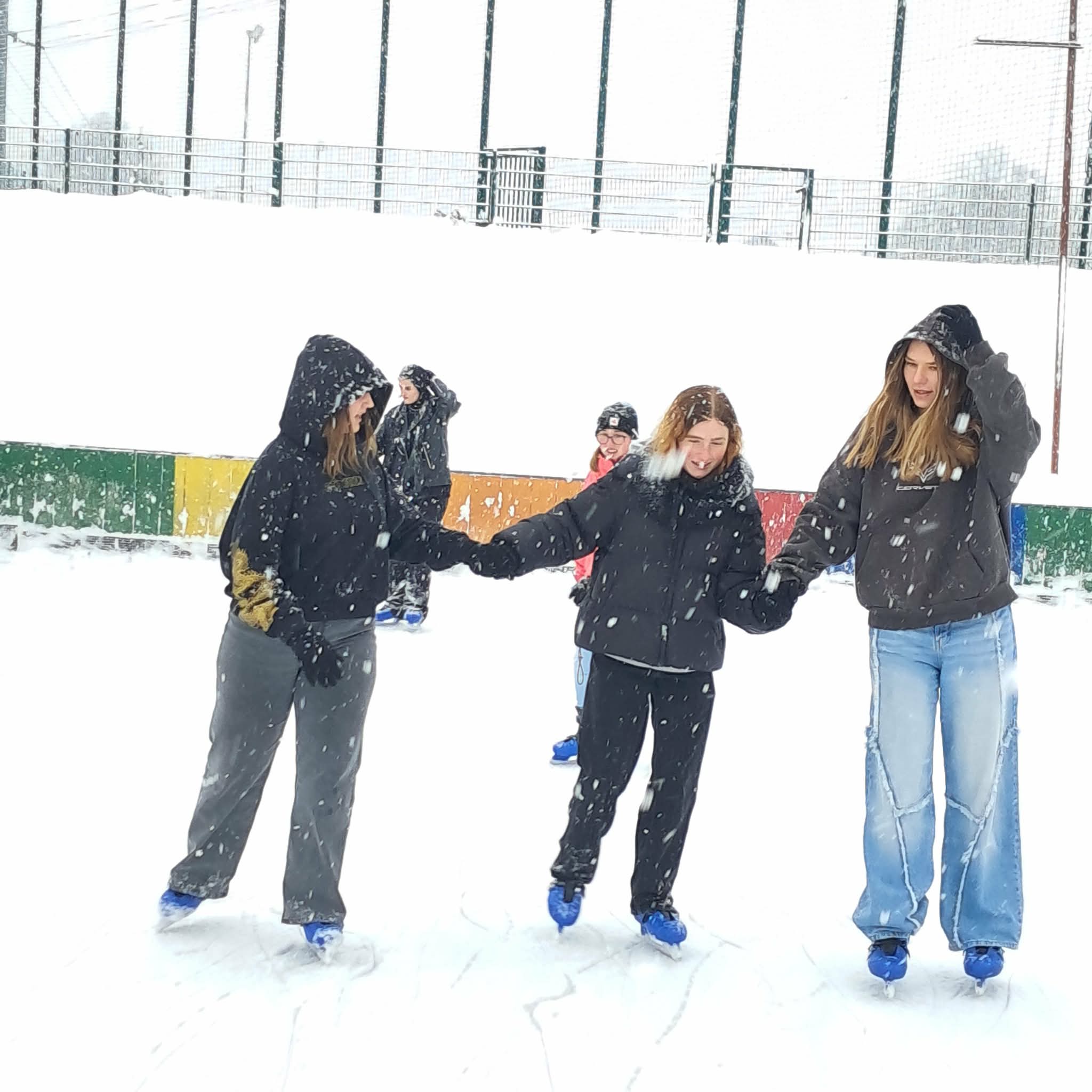 W ramach lekcji wychowania fizycznego byliśmy częstymi gośćmi na lodowisku, gdzie mieliśmy okazję aktywnie spędzić czas na świeżym powietrzu oraz doskonalić swoje umiejętności jazdy na łyżwach. Dla wszystkich była to świetna okazja do rozwijania sprawności fizycznej, poprawy równowagi i koordynacji ruchowej, a także do przełamywania własnych obaw związanych z jazdą na lodzie. Z dużym zaangażowaniem ćwiczyliśmy różne elementy jazdy – od podstawowego poruszania się po lodzie, przez utrzymywanie równowagi, aż po bardziej swobodne i pewne wykonywanie skrętów, hamowania czy naukę jazdy przekładanką. Ci z nas, którzy mieli już doświadczenie w jeździe na łyżwach, chętnie pomagali innym kolegom i koleżankom stawiającym pierwsze kroki na lodzie, dzięki czemu było dużo zabawy, śmiechu i panowała świetna atmosfera. Upadki na lodzie szybko zamieniały się w żarty, a kolejne okrążenia lodowiska przynosiły coraz większą pewność siebie i satysfakcję z postępów. Dla wielu z nas była to nie tylko lekcja wf-u, ale także świetna forma relaksu i oderwania się od codziennych obowiązków szkolnych.