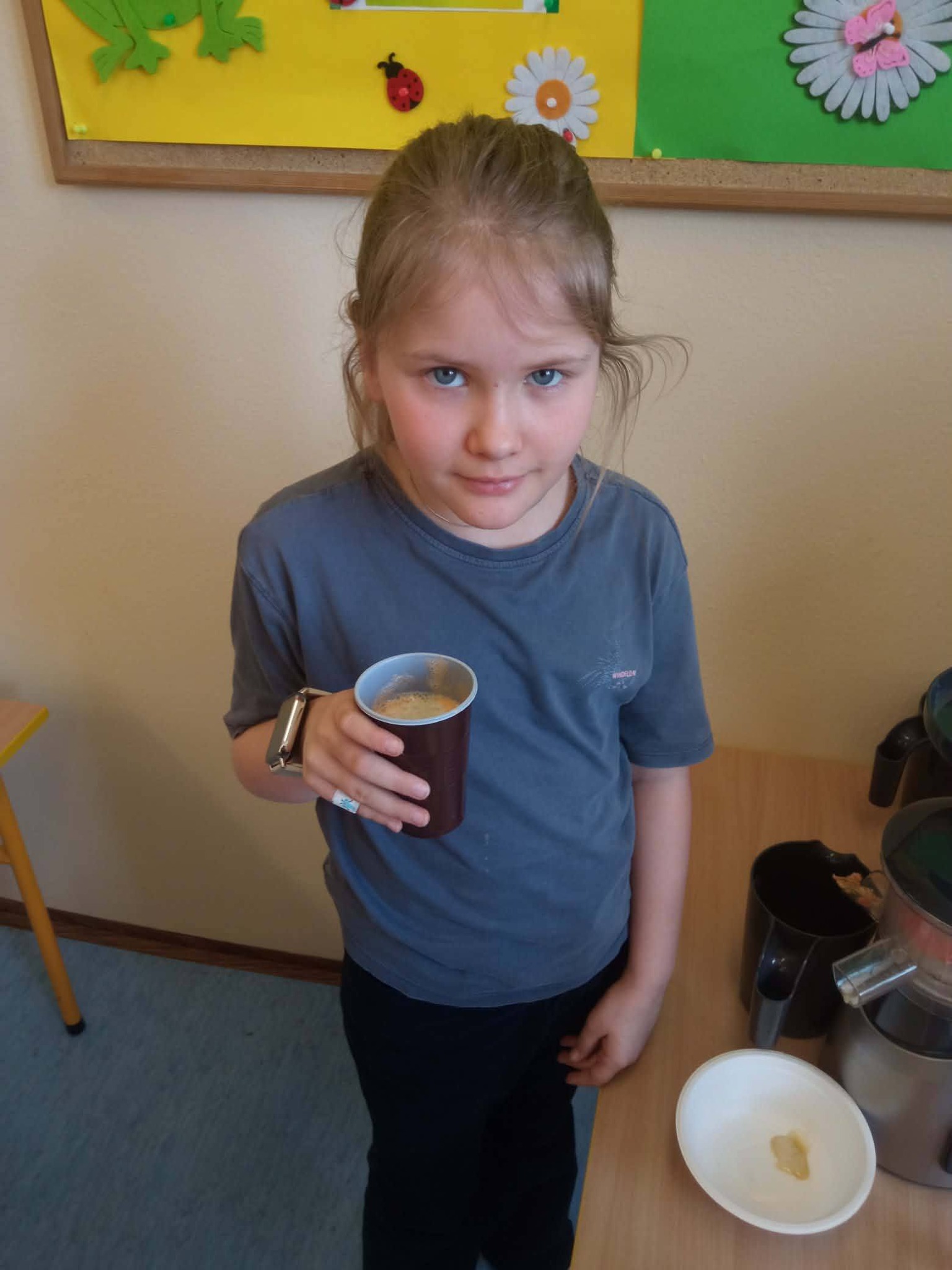 Degustacja przebiegła w radosnej atmosferze, a kolorowe wąsy po wypiciu zdrowych mikstur były najlepszym dowodem na to, że zdrowa dieta może być pyszną zabawą.