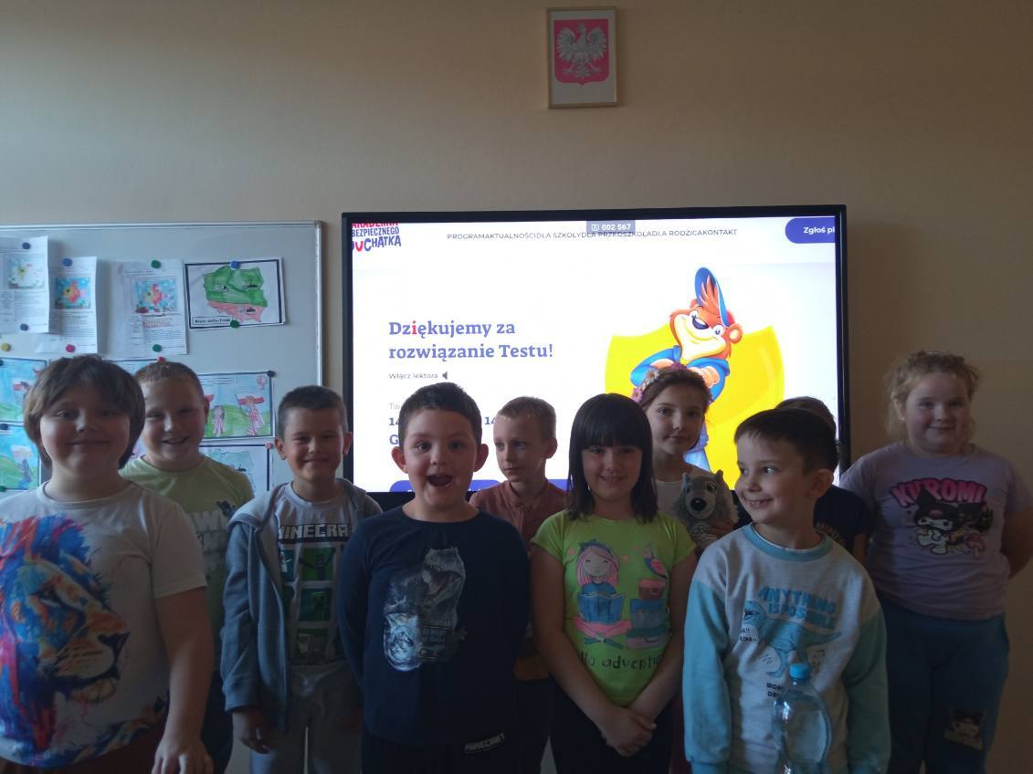 Uczniowie edukacji wczesnoszkolnej naszej szkoły z sukcesem ukończyli Ogólnopolski Test Bezpieczeństwa w ramach programu edukacyjnego "Akademia Bezpiecznego Puchatka". Dzieci miały okazję sprawdzić swoją wiedzę na temat kluczowych zasad bezpieczeństwa: w drodze do szkoły, w domu, w Internecie oraz podczas zabaw.