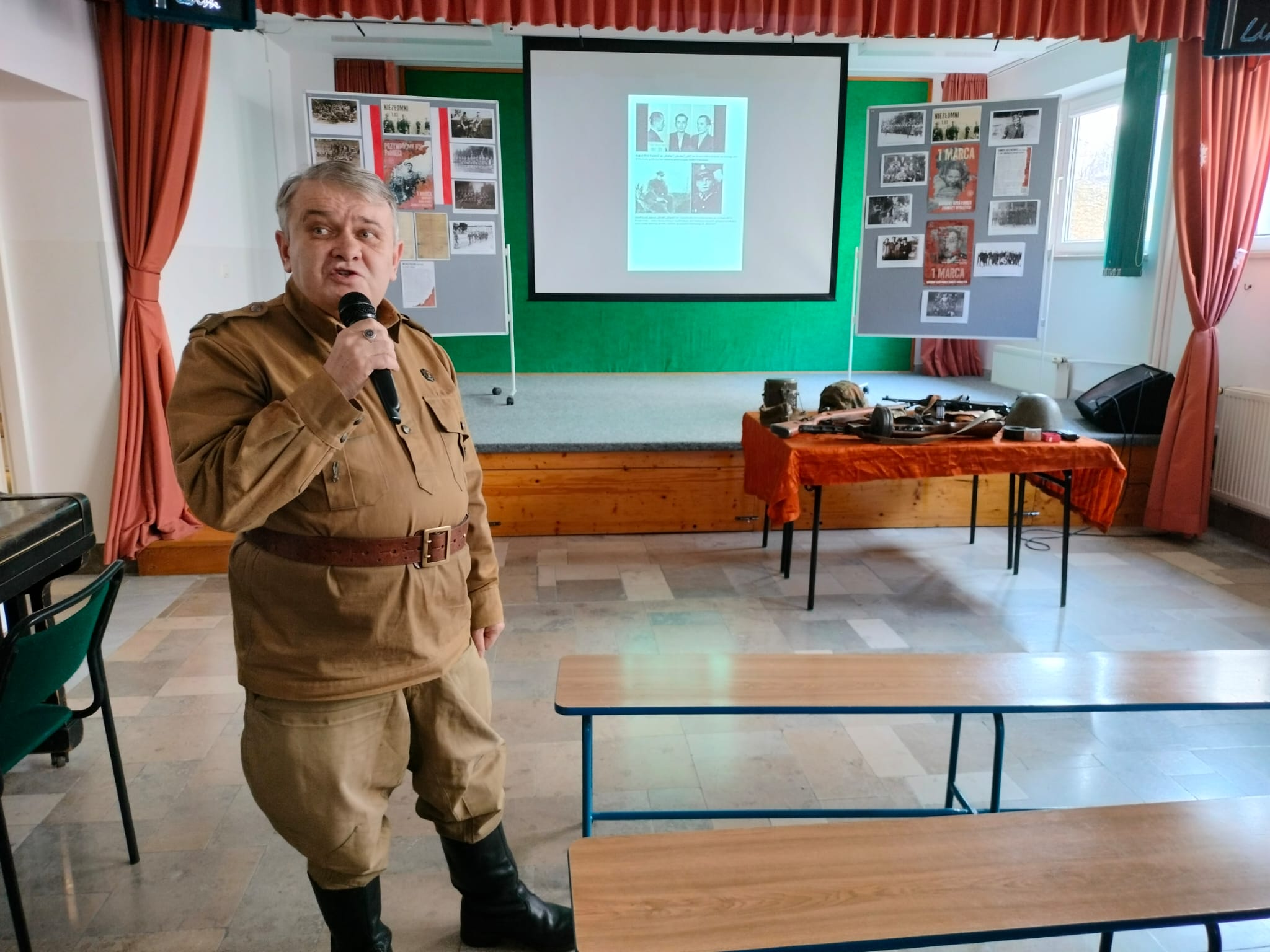 Prelekcję poprowadził lokalny historyk z Grupy Rekonstrukcji Historycznej „Błyskawica” Artur Kołodziej oraz nauczyciel historii w Zespole Szkół Uzdrowiskowych w Rabce. W interesujący sposób opowiedzieli o realiach życia w konspiracji oraz działalności takich formacji jak III Kompania Józefa Kurasia ,,Ognia" oraz organizacji WiN o kryptonimie Himera działającej w Rabce pod dowództwem ppor. Mariana Topora ,,Opal" . Uczniowie mieli okazję poznać trudne powojenne czasy, skalę represji oraz dramatyczne wybory, przed jakimi stawali młodzi ludzie w obliczu narzuconego systemu komunistycznego.