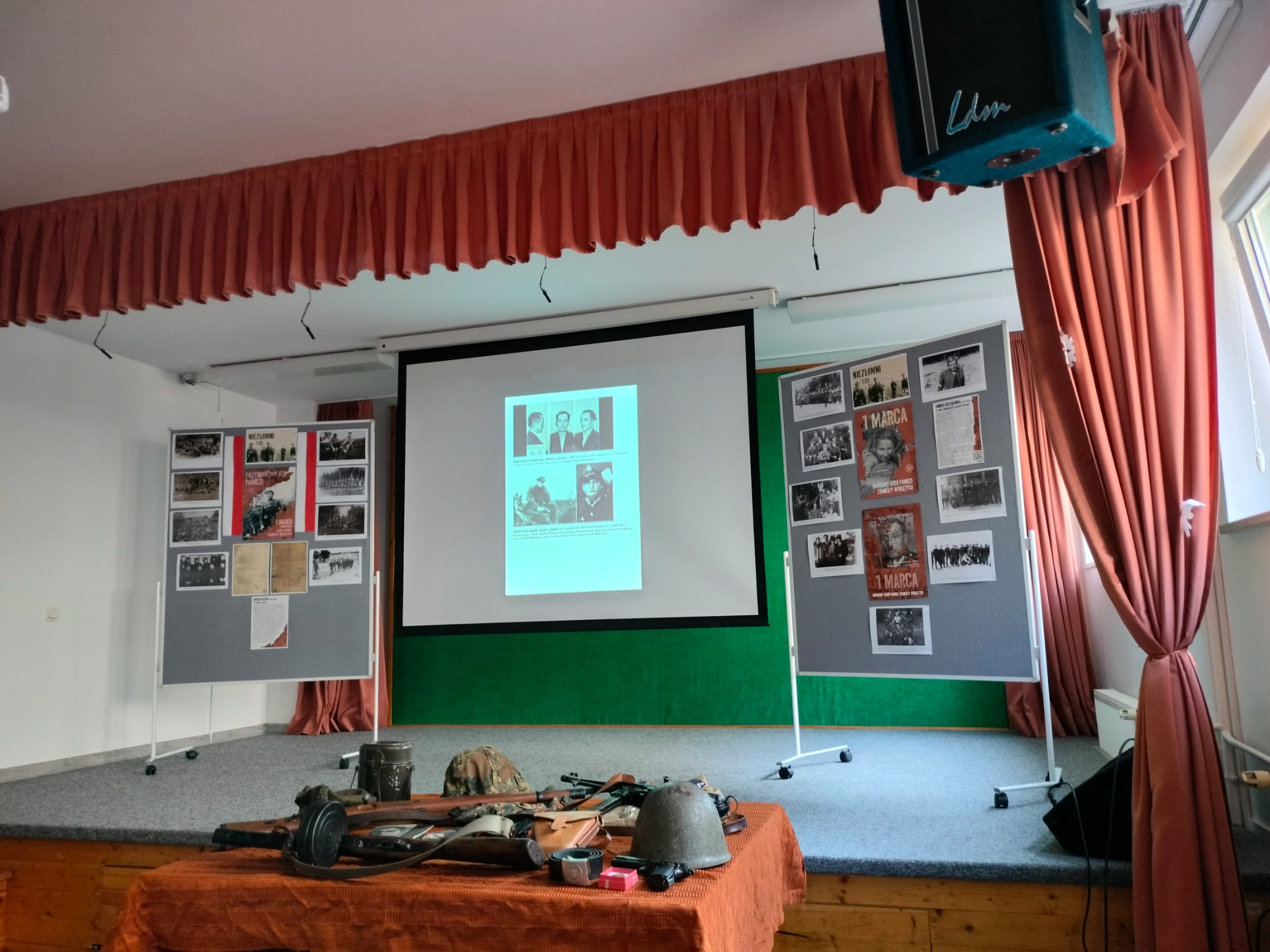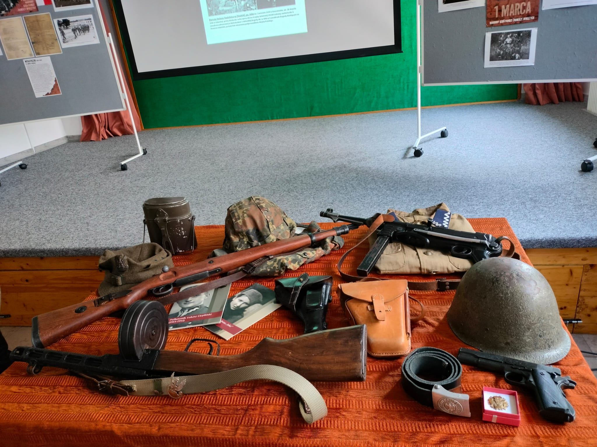 Dużym zainteresowaniem cieszyła się prezentacja pamiątek historycznych z okresu II wojny światowej – mundurów, elementów umundurowania, wyposażenia wojskowego oraz replik broni.