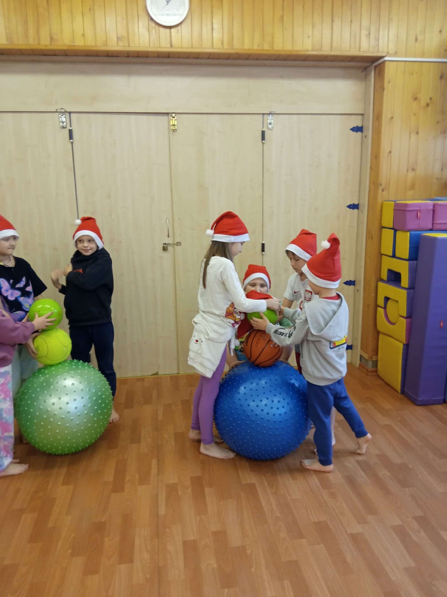 - Lepienie bałwana z piłek (zadanie zespołowe).
