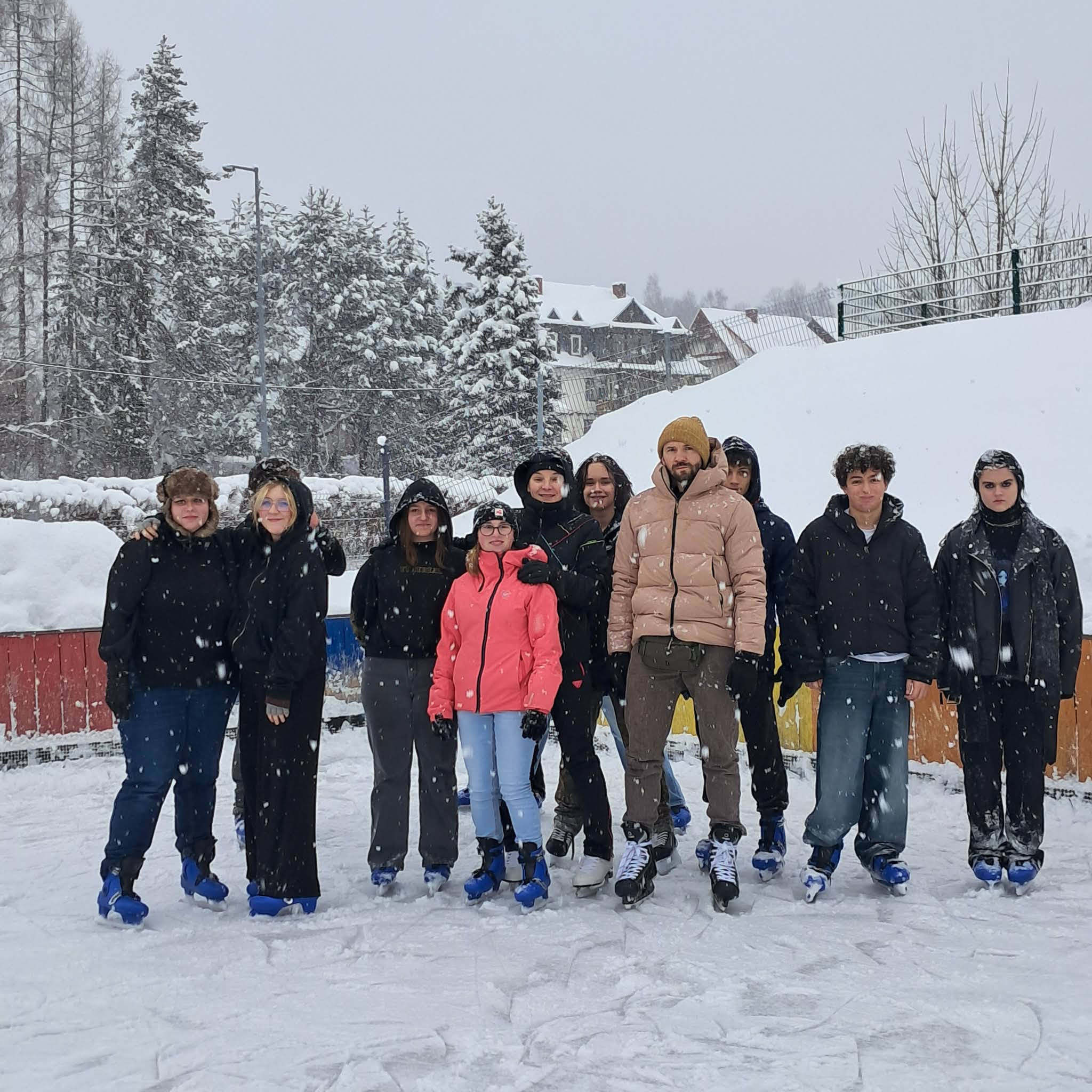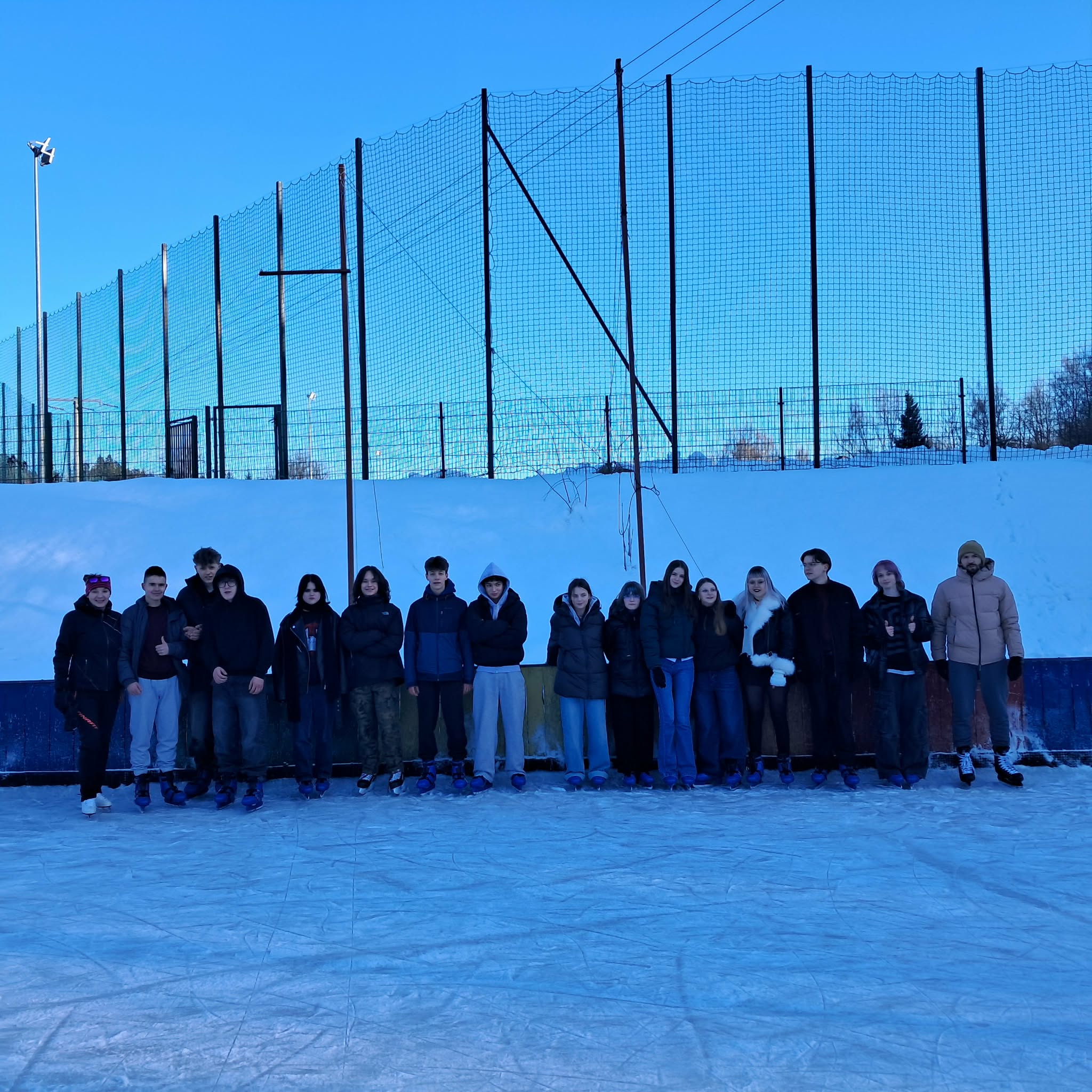 W ramach lekcji wychowania fizycznego byliśmy częstymi gośćmi na lodowisku, gdzie mieliśmy okazję aktywnie spędzić czas na świeżym powietrzu oraz doskonalić swoje umiejętności jazdy na łyżwach. Dla wszystkich była to świetna okazja do rozwijania sprawności fizycznej, poprawy równowagi i koordynacji ruchowej, a także do przełamywania własnych obaw związanych z jazdą na lodzie. Z dużym zaangażowaniem ćwiczyliśmy różne elementy jazdy – od podstawowego poruszania się po lodzie, przez utrzymywanie równowagi, aż po bardziej swobodne i pewne wykonywanie skrętów, hamowania czy naukę jazdy przekładanką. Ci z nas, którzy mieli już doświadczenie w jeździe na łyżwach, chętnie pomagali innym kolegom i koleżankom stawiającym pierwsze kroki na lodzie, dzięki czemu było dużo zabawy, śmiechu i panowała świetna atmosfera. Upadki na lodzie szybko zamieniały się w żarty, a kolejne okrążenia lodowiska przynosiły coraz większą pewność siebie i satysfakcję z postępów. Dla wielu z nas była to nie tylko lekcja wf-u, ale także świetna forma relaksu i oderwania się od codziennych obowiązków szkolnych.