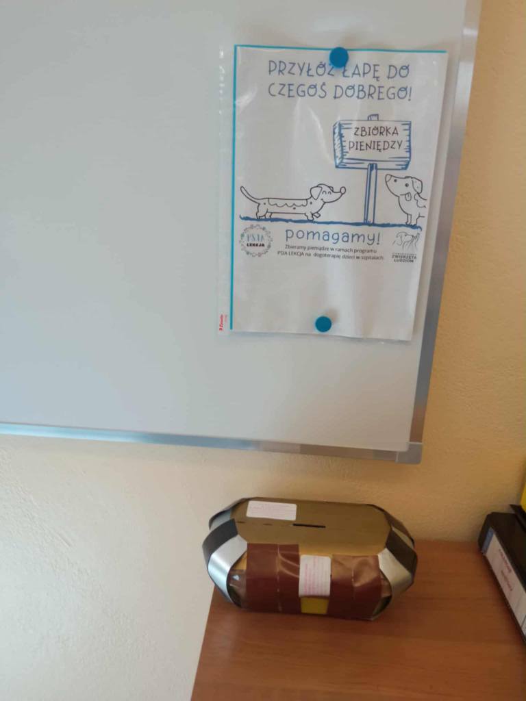 Nasi uczniowie –pacjenci obejrzeli filmy edukacyjne: Kodeks przyjaźni z psem. Psia mowa, jak zrozumieć psa? Podjęli dyskusję na temat obejrzanych filmów, wypełnili ciekawe karty pracy, wykonali wspaniałe prace plastyczne. Pokazali też swoje ,,wielkie serca’’, kiedy wraz ze swoimi rodzicami przekazali drobne datki na prowadzenie dogoterapii. Pozostałe lekcje i zbiórka charytatywna prowadzona będzie również w kolejnych miesiącach. Pod koniec roku szkolnego zebrane pieniążki przekazane zostaną Stowarzyszeniu Zwierzęta Ludziom.