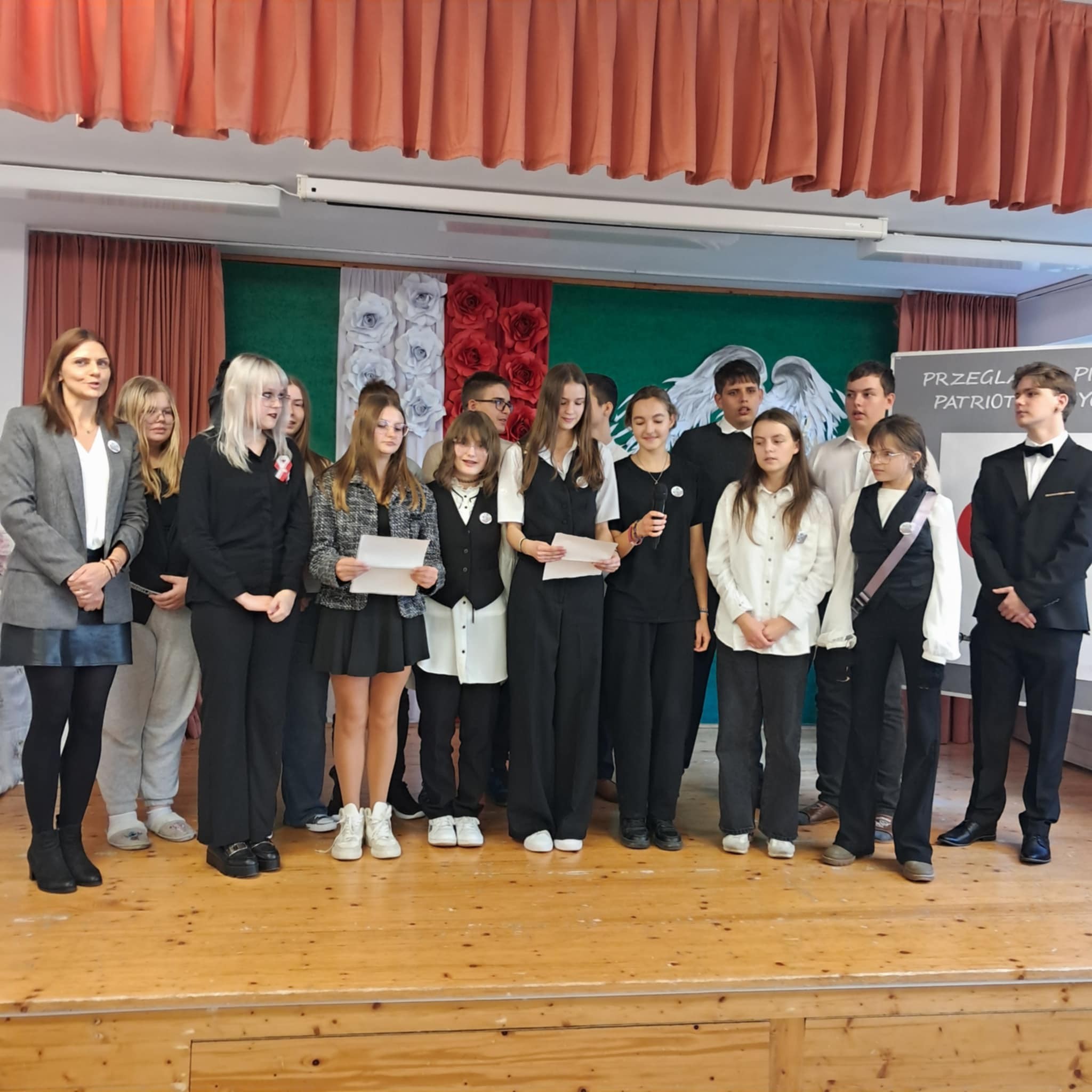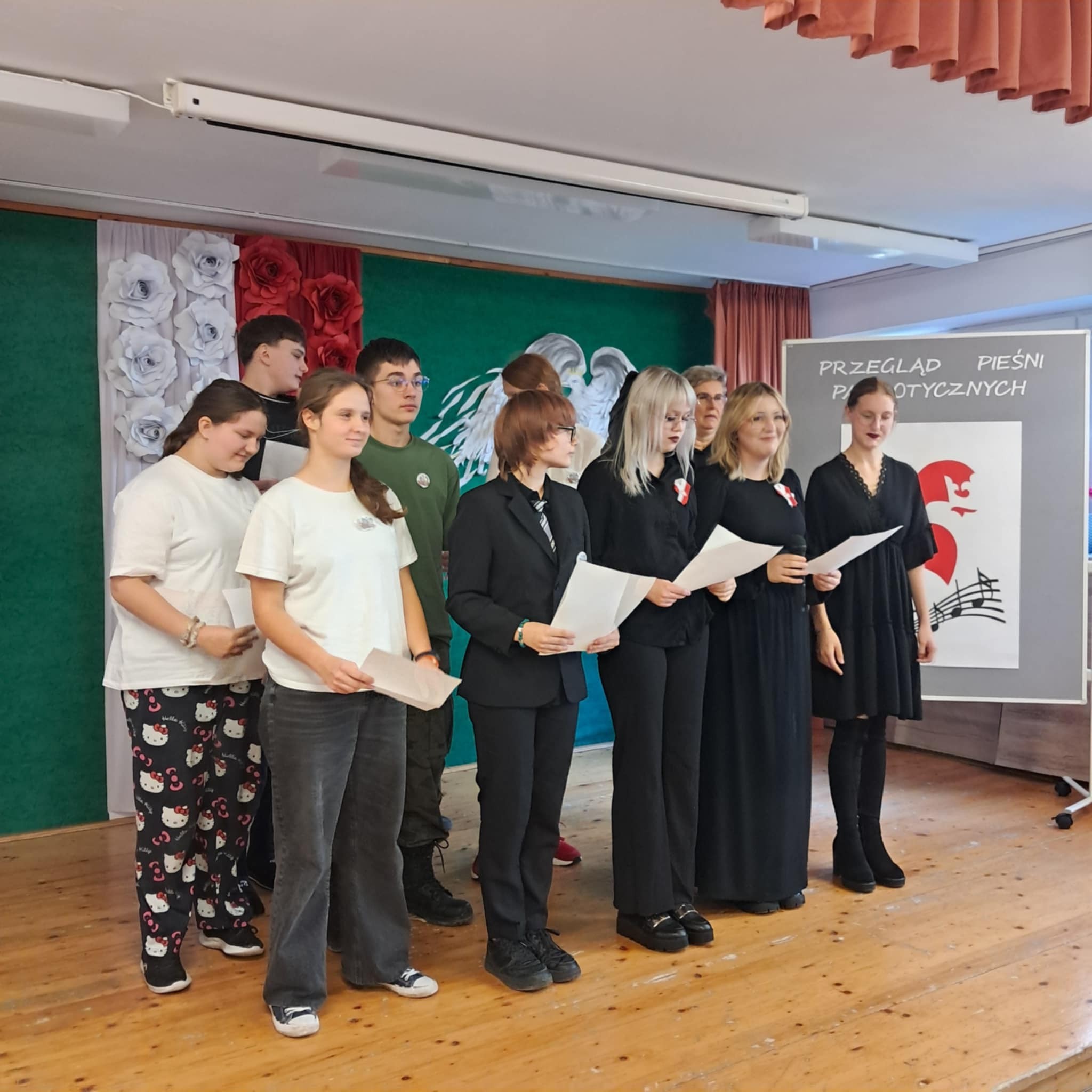 Po zakończeniu akademii odbył się Przegląd Pieśni Patriotycznych, w którym wystąpili uczniowie szkoły podstawowej i liceum, a także nauczyciele. Młodzi artyści zaprezentowali utwory poświęcone wolności, ojczyźnie i bohaterstwu Polaków, tworząc wyjątkową atmosferę wspólnego świętowania i jedności międzypokoleniowej.